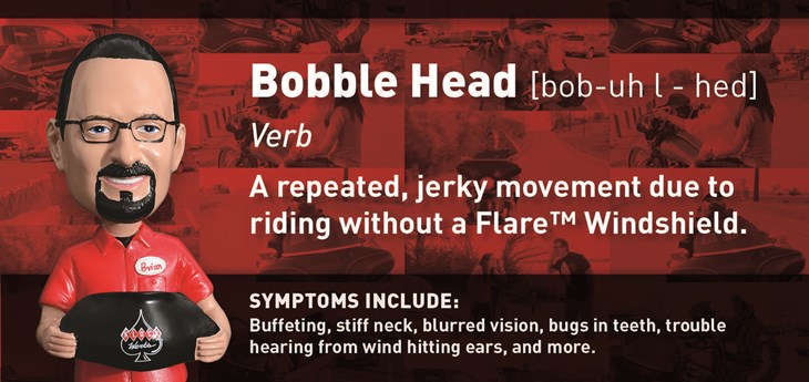 #ELIMINATEBOBBLEHEAD – A repeated, jerky movement due to riding without a Flare Windshield.